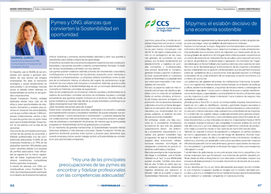 El Consejo Colombiano de Seguridad (CCS) participa en el Anuario Corresponsables Pymes 2025, una de las principales publicaciones iberoamericanas sobre Responsabilidad Social Empresarial (RSE), sostenibilidad y criterios ESG. Este Anuario es elaborado por Corresponsables, medio de referencia en sostenibilidad a nivel internacional.