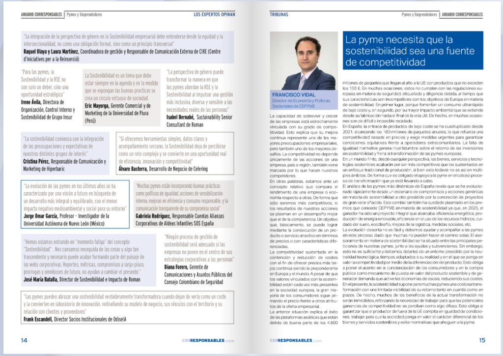 Como resultado de este intercambio, el Anuario Corresponsables Pymes 2025 recoge más de 500 buenas prácticas impulsadas por pequeñas y medianas empresas que avanzan hacia modelos de gestión más responsables, sostenibles e inclusivos, con un enfoque práctico y adaptado a la realidad de este tipo de organizaciones.