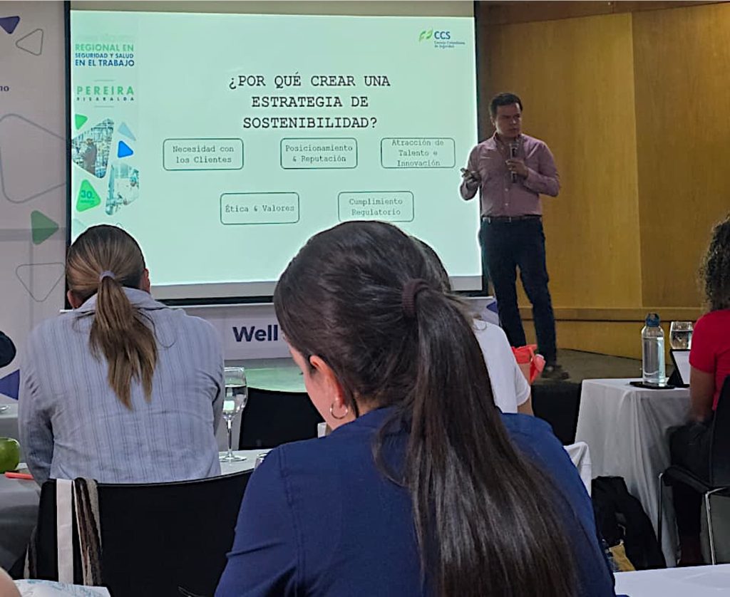 Maira Sarmiento, vicepresidenta técnica del CCS, presentó un panorama sobre los desafíos regionales en siniestralidad laboral, donde destacó que en Risaralda se registraron 6726 accidentes de trabajo durante el primer semestre de 2025, un aumento de más del 9 % con respecto al mismo periodo del año anterior.