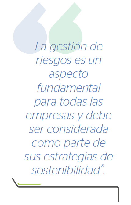 La gestión de riesgos es un aspecto fundamental para todas las empresas y debe ser considerada como parte de sus estrategias de sostenibilidad. La capacidad de cada corporación para identificar, abordar, planificar e implementar medidas para adaptarse, protegerse y responder ante las nuevas dinámicas que se están generando en los sistemas naturales o humanos —incluyendo la presión social y las expectativas de todos los grupos de interés— son aspectos fundamentales en periodos de inestabilidad extrema.