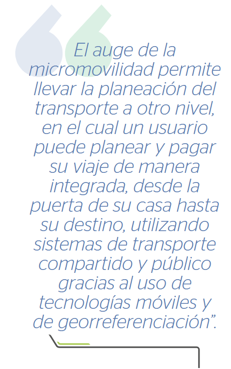 El auge de la micromovilidad permite llevar la planeación del transporte a otro nivel, en el cual un usuario puede planear y pagar su viaje de manera integrada, desde la puerta de su casa hasta su destino, utilizando sistemas de transporte compartido y público gracias al uso de tecnologías móviles y de georreferenciación. Este concepto se conoce como Mobility as a Service (MaaS), una iniciativa que tiene orígenes público-privados y que promete cambiar de manera profunda los paradigmas de la movilidad basada en propiedad vehicular a una que articule todas las formas compartidas de transporte (bikesharing, carsharing, bicicletas y patinetas públicas, transporte público, etc.) para movilizarnos de manera más económica, más eficiente, más amable y con menor impacto para la congestión y el medio ambiente.