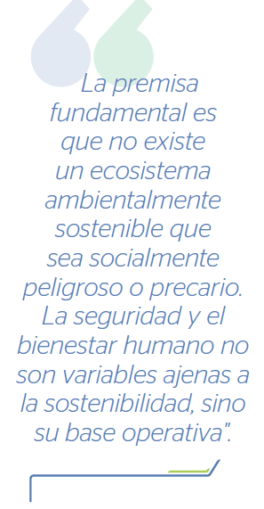 La premisa fundamental es que no existe un ecosistema ambientalmente sostenible que sea socialmente peligroso o precario. La seguridad y el bienestar humano no son variables ajenas a la sostenibilidad, sino su base operativa.