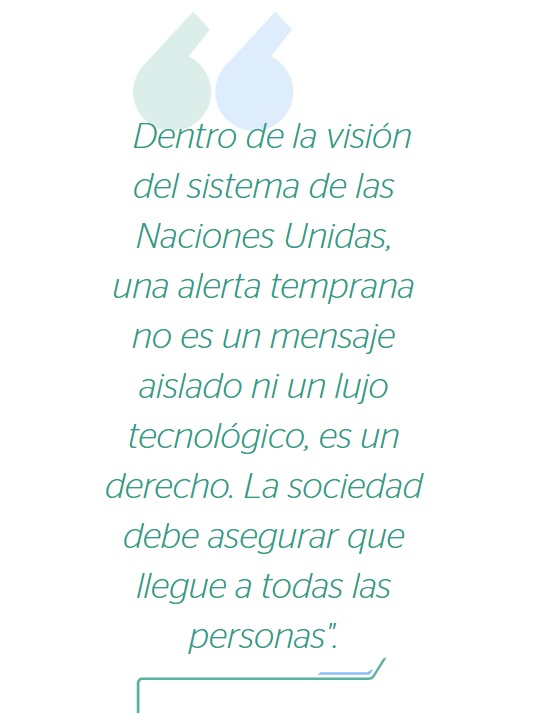 Dentro de la visión del sistema de las Naciones Unidas, una alerta temprana no es un mensaje aislado ni un lujo tecnológico, es un derecho. La sociedad debe asegurar que llegue a todas las personas: desde una comunidad rural hasta una gran ciudad, desde un pequeño Estado insular hasta una metrópoli latinoamericana.