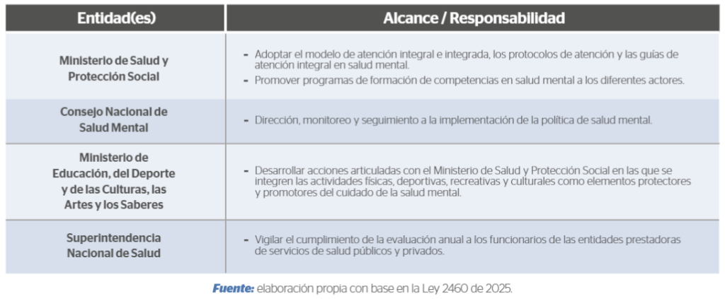 Fundación Fepropaz. (2025). ABC de la ley de salud mental en Colombia 2025. Recuperado de https://fepropaz.com/ley-de-salud-mental-colombia-2025/#:~:text=Reforma%20estructural%20a%20la%20Ley,entornos%20protectores%20desde%20la%20infancia.