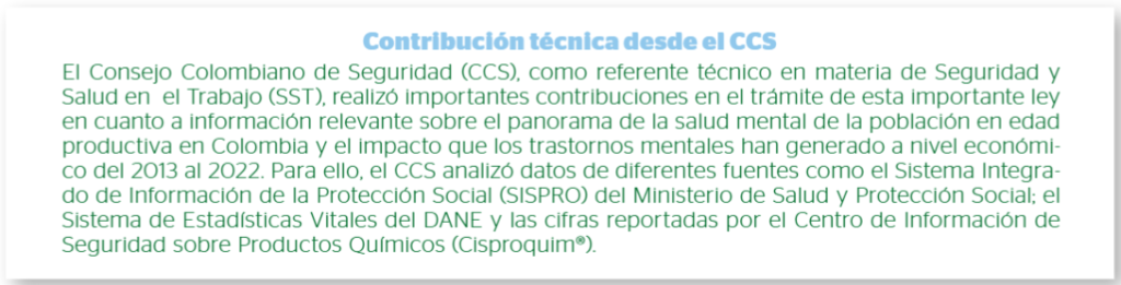 Consejo Colombiano de Seguridad (CCS). (2024). Impacto de muertes asociadas a trastornos mentales y lesiones autoinfligidas alcanzó más de 56,5 mil millones de dólares entre el 2013 y 2022.